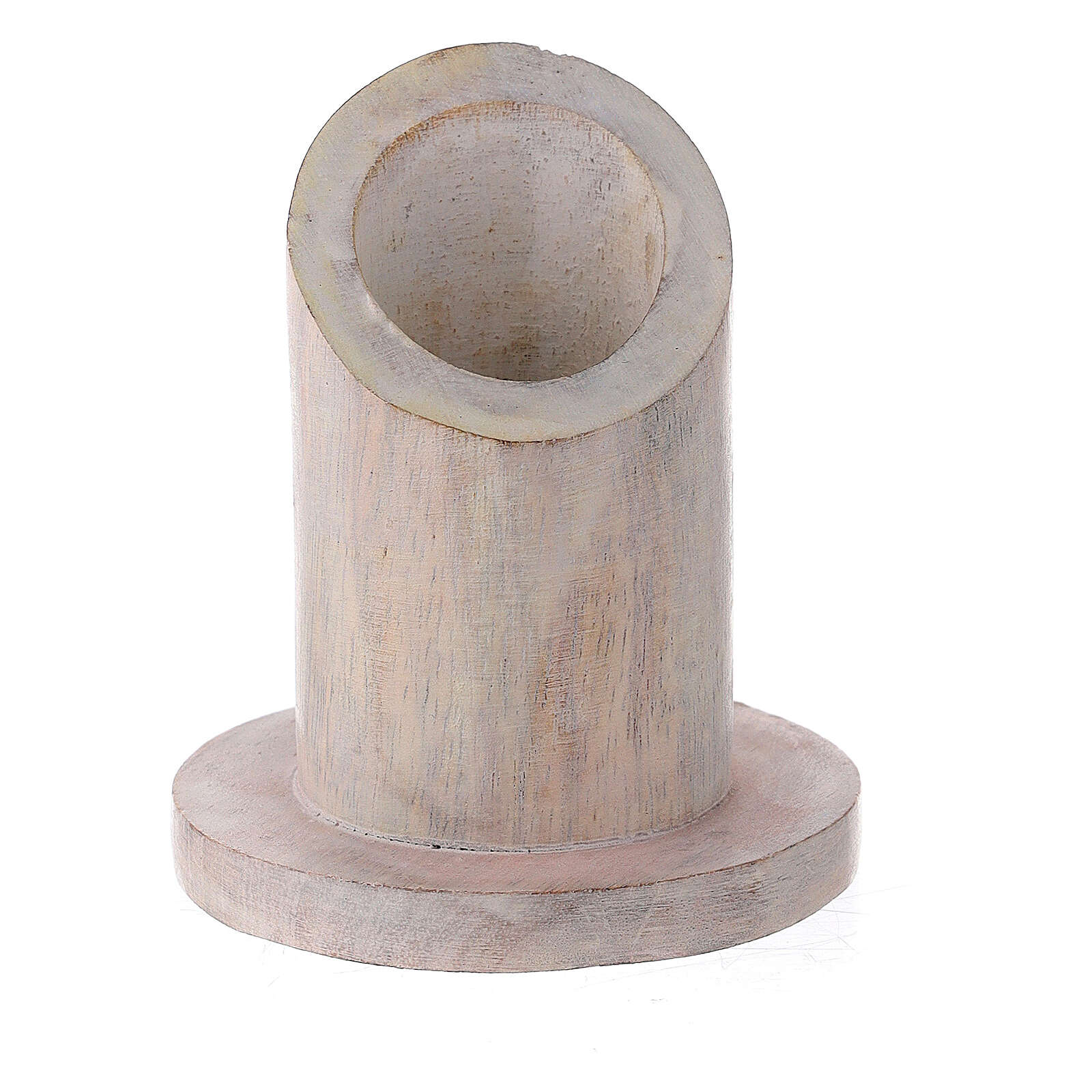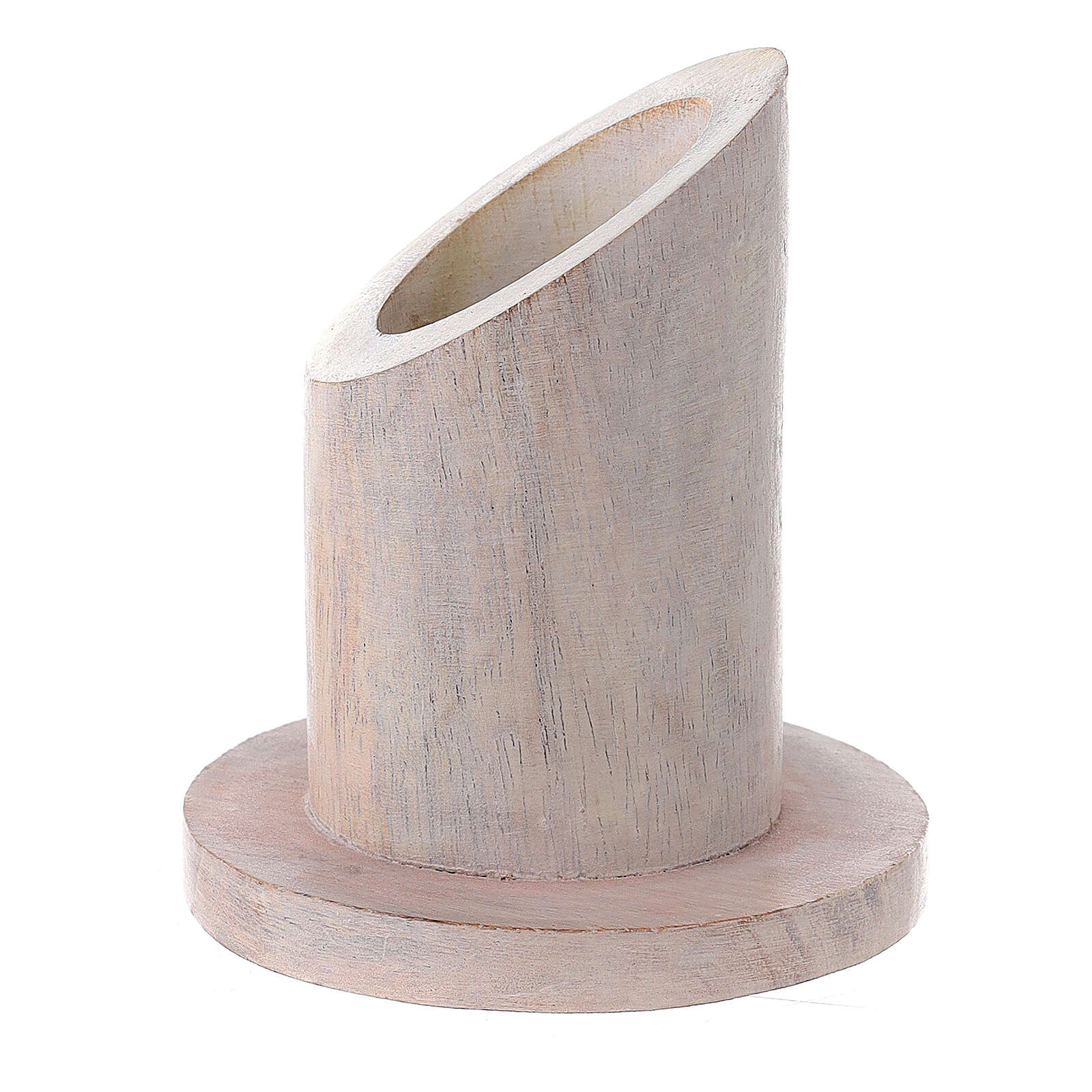 Bougeoir bois de manguier clair coupe oblique 3 cm. Bougeoir pour milieu domestique ou liturgique, réalisé en bois de manguier de couleur claire avec bocal oblique de 3 cm de diamètre.