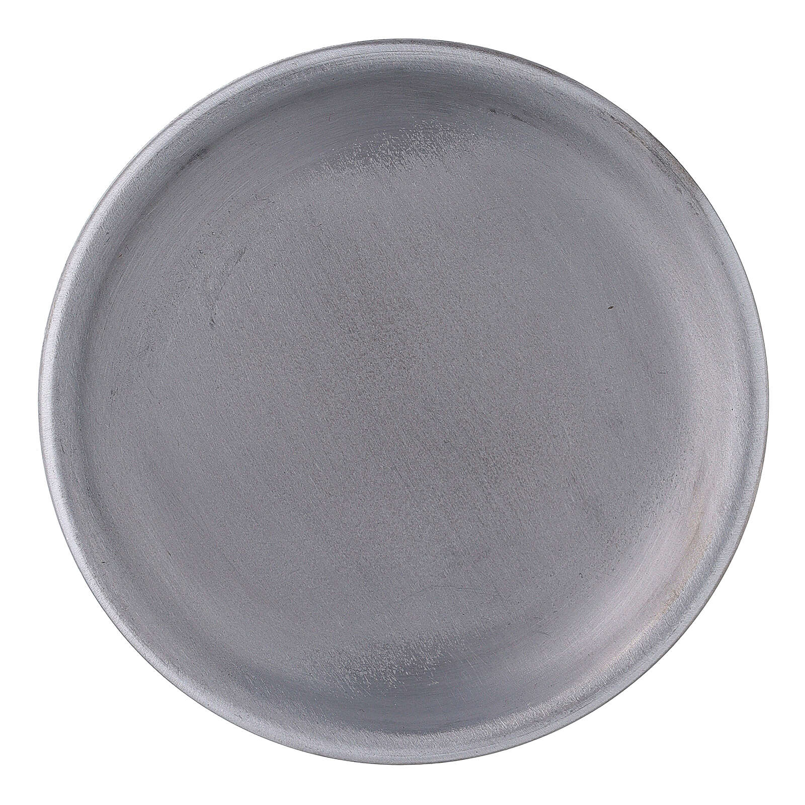 Bougeoir bords rehaussés aluminium 10 cm. Assiette porte-bougie en aluminium satiné de 10 cm de diamètre avec bords rehaussés et pieds pour respecter les surfaces délicates.