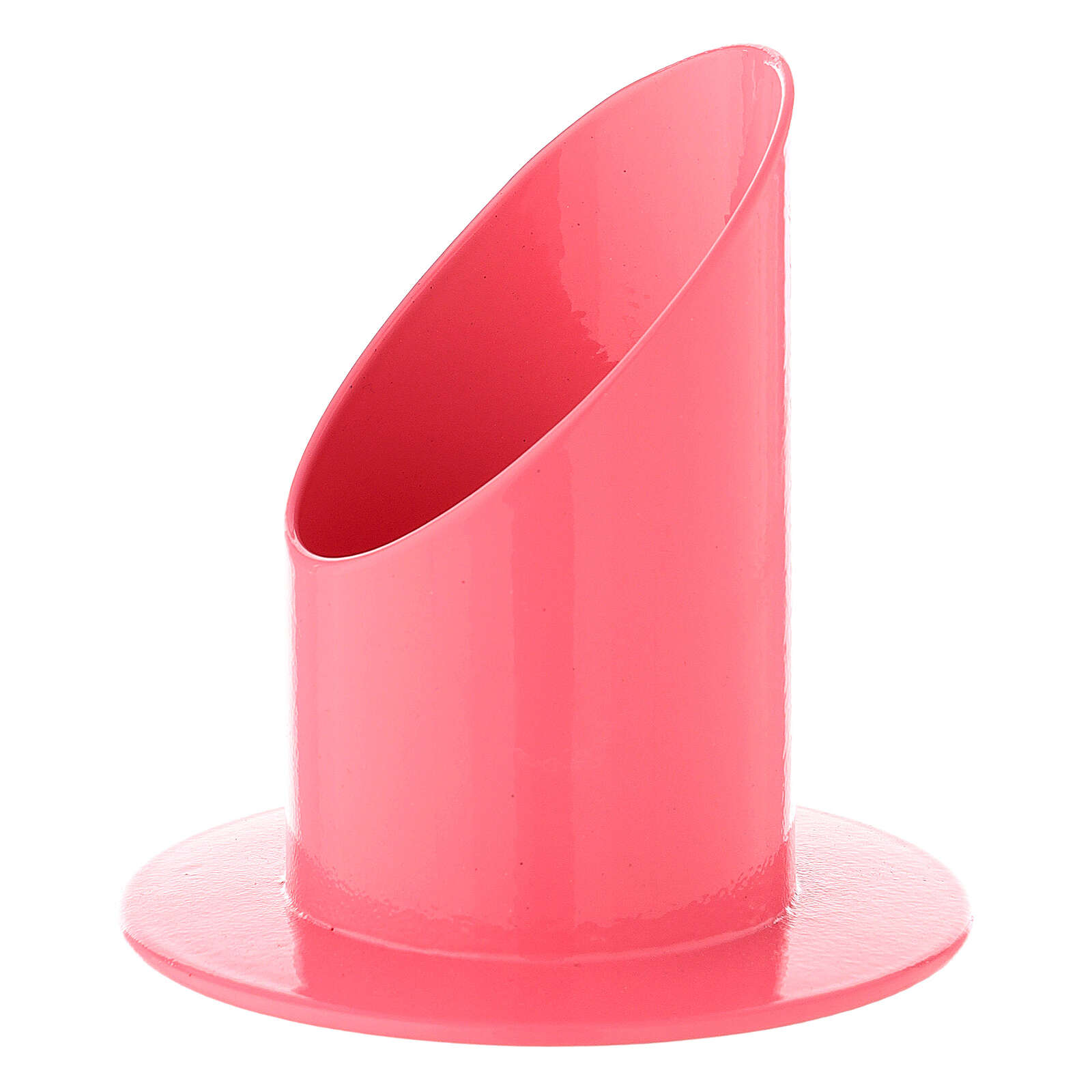 Bougeoir couleur framboise fer 5 cm. Bougeoir en fer avec bocal de coupe oblique d'une moderne couleur framboise.