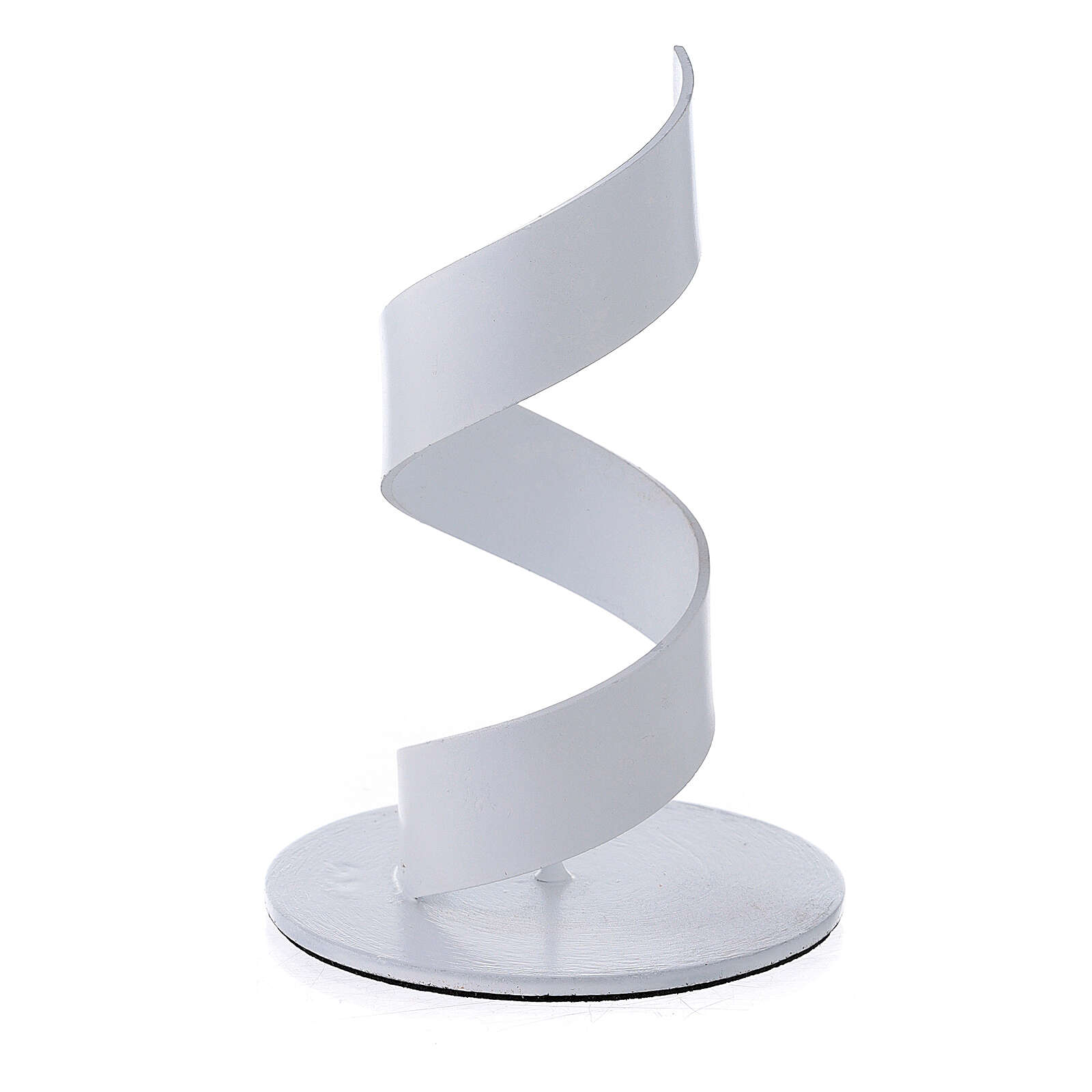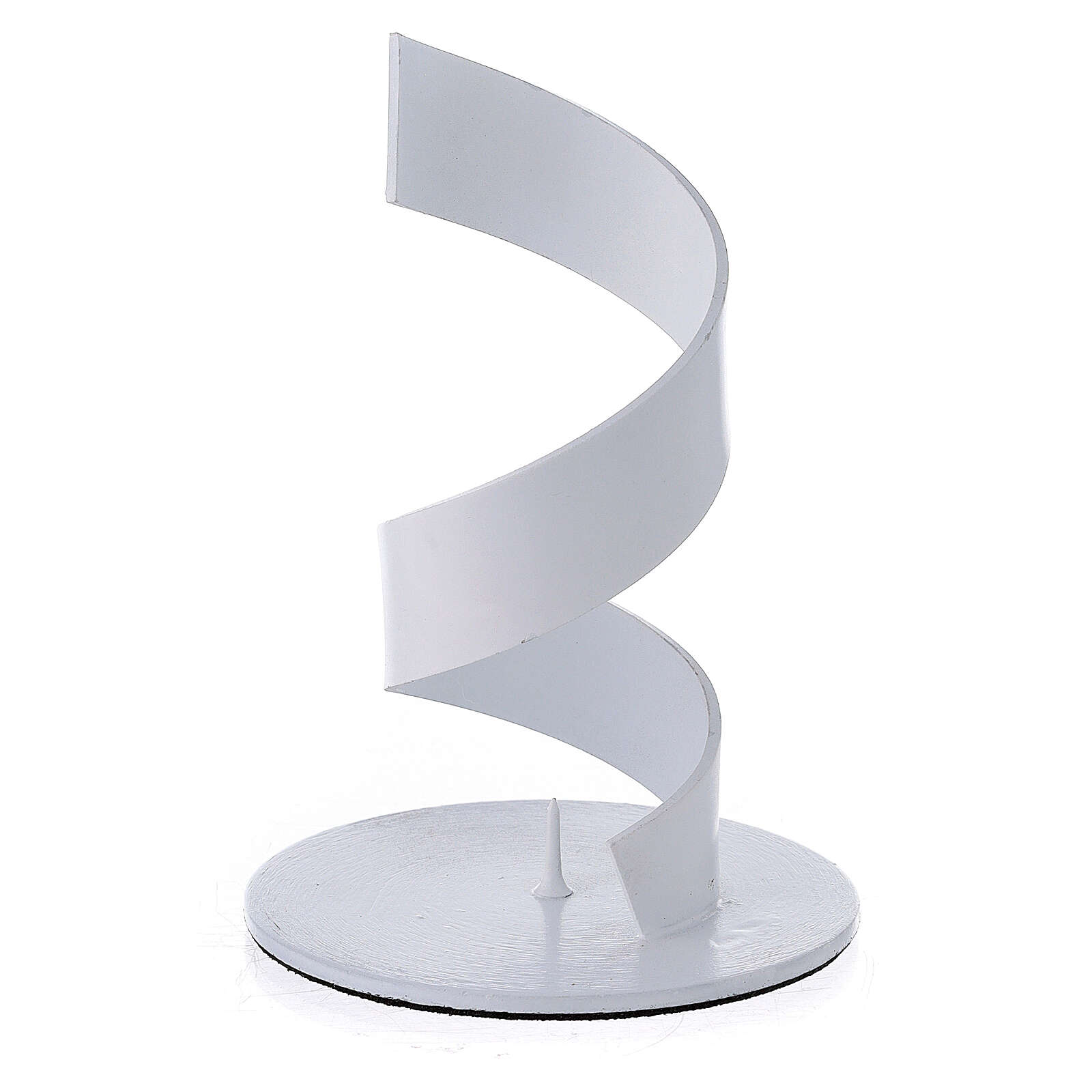 Bougeoir spirale aluminium blanc 4 cm. Bougeoir en aluminium verni blanc de 4 cm de diamètre avec base circulaire, pic central et structure en spirale enveloppant la bougie.