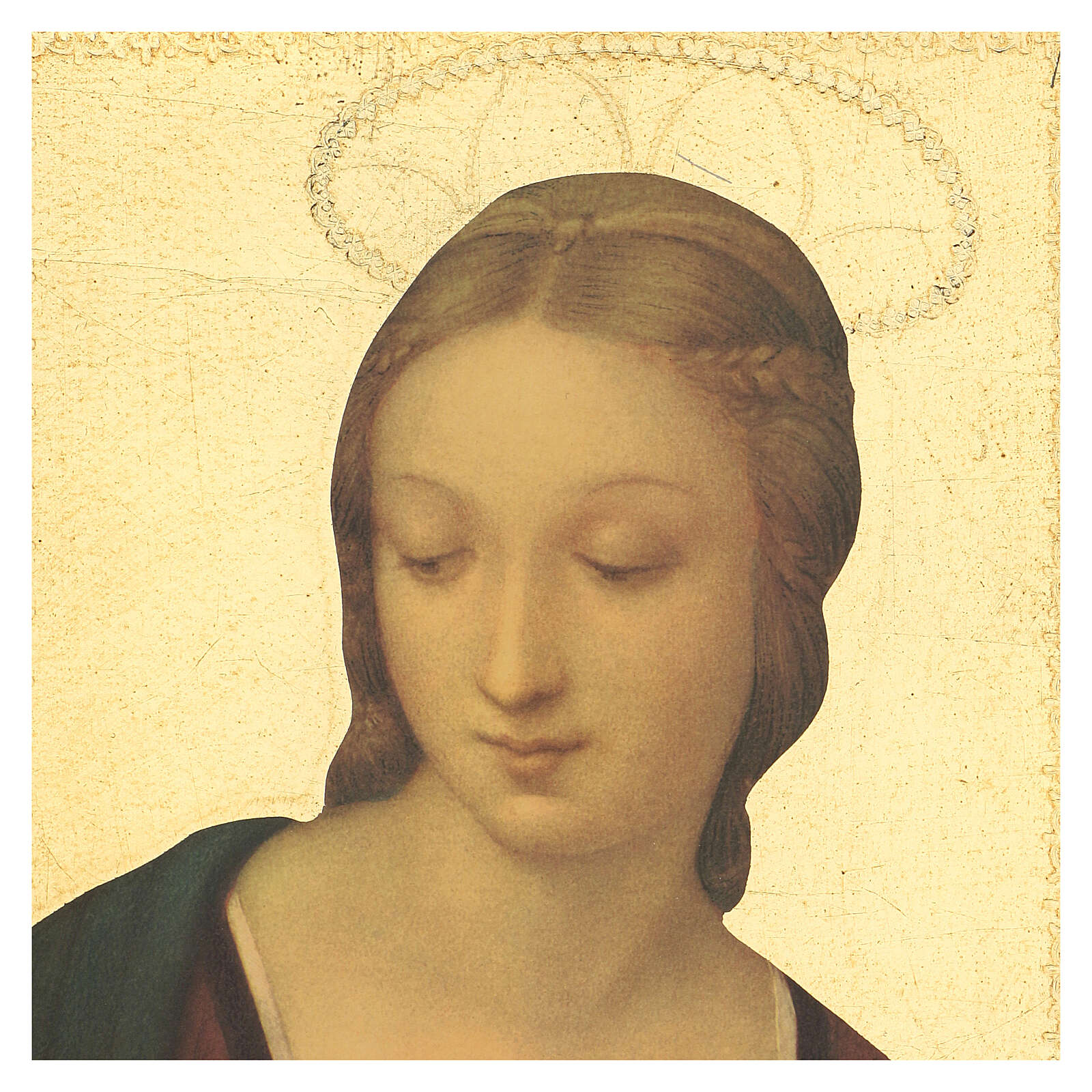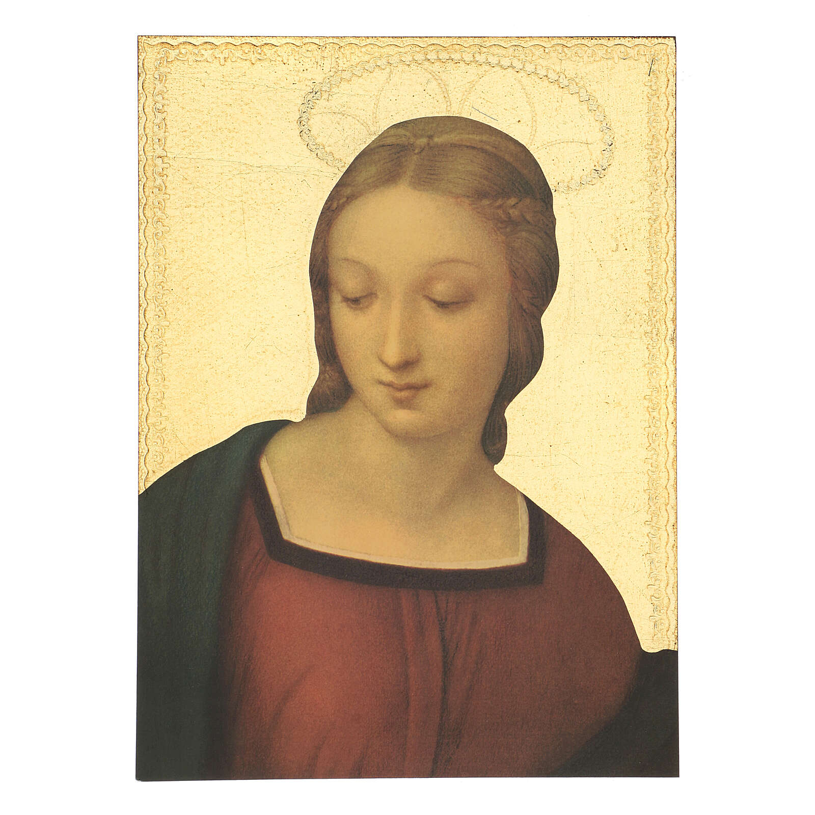 Cadre impression sur bois Vierge au Chardonneret 37x27 cm. Cadre en bois avec reproduction imprimée de la Vierge au Chardonneret de Raphaël.