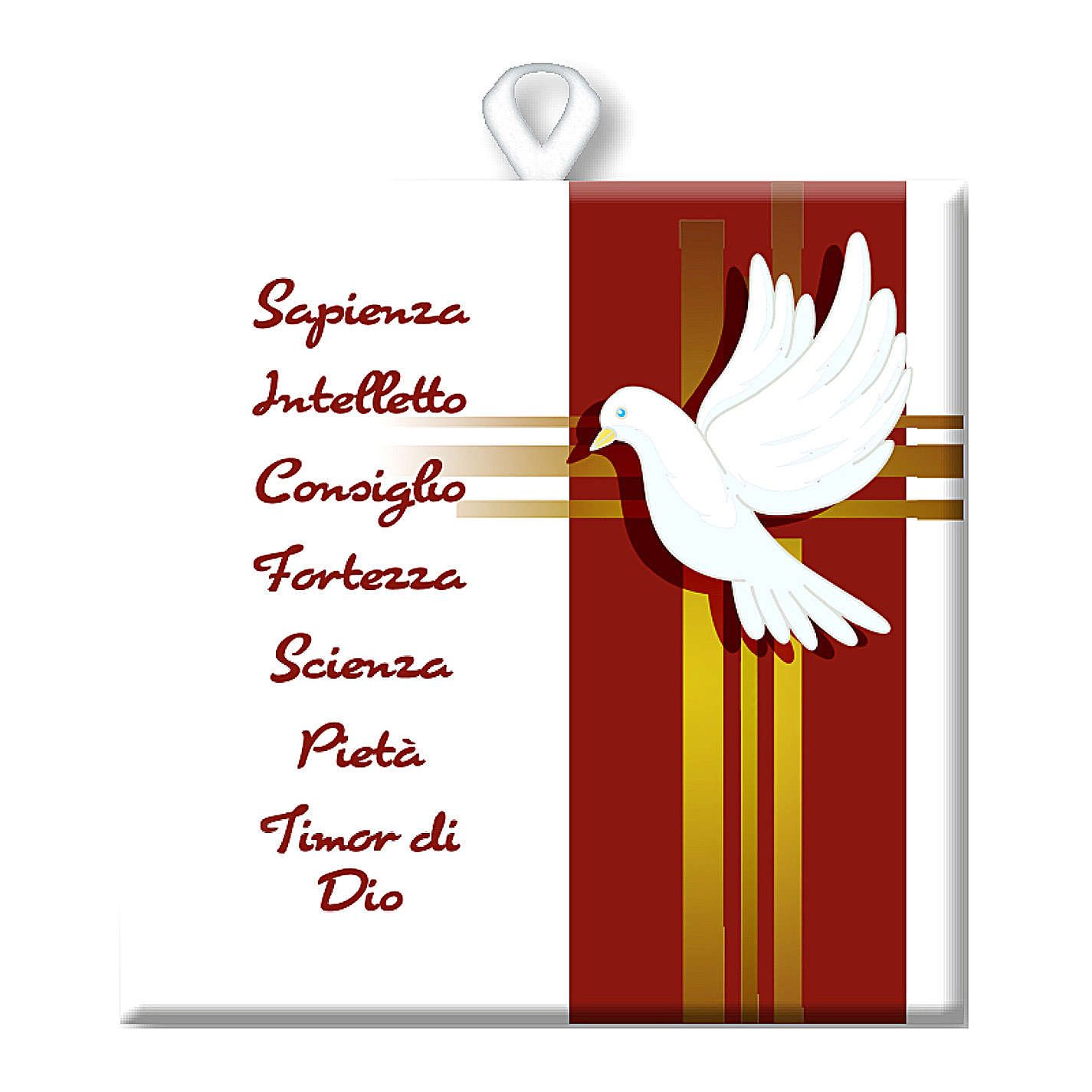 Carreau céramique imprimé image Saint Esprit et Dons 10x10 cm. Carreau décoratif en céramique de Sassuolo avec impression d'image réalisée dans les laboratoire Fratelli Bonella.Produit livré dans une élégante boîte, idéal comme souvenir ou bonbonnière pour la Confirmation.