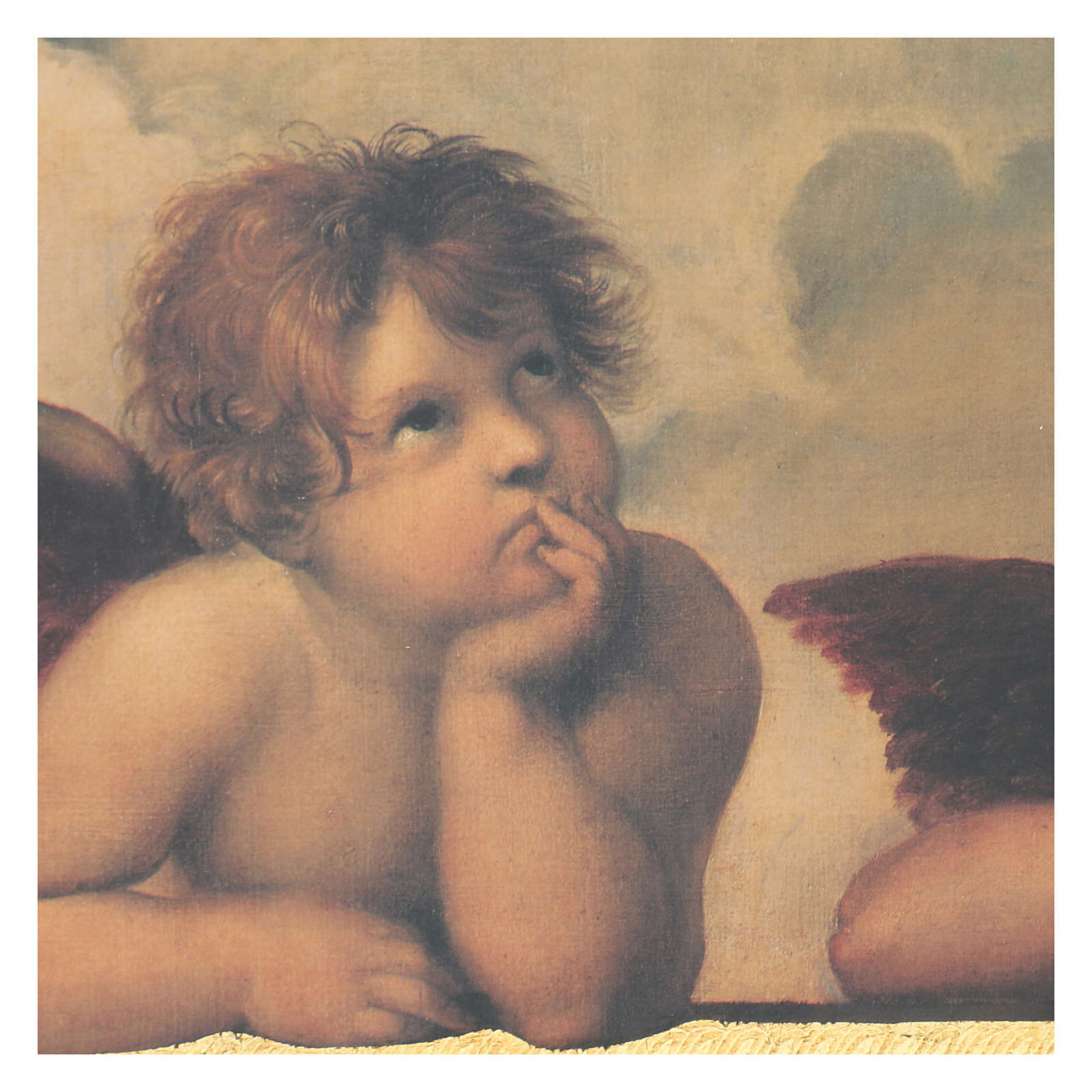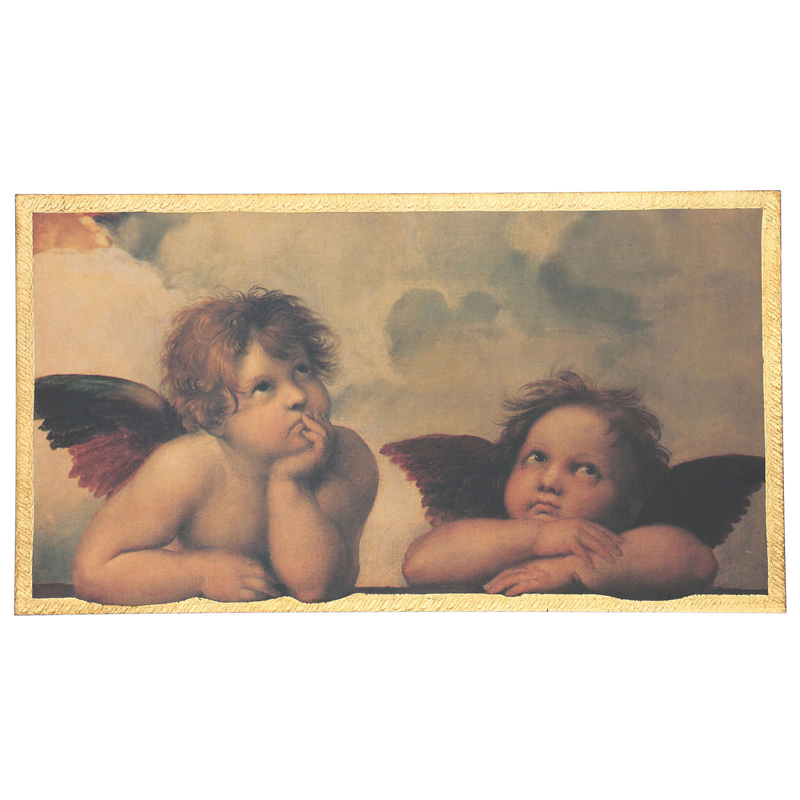 STOCK Impression sur bois anges Raphaël avec encadrement 25x50 cm. Reproduction d'un détail des classiques "Anges de Raphaël" avec image imprimée en haute définition sur planche en bois de 3 cm d'épaisseur.Article réalisé entièrement en Toscane par des artisans italiens travaillant selon des méthodes traditionnelles.