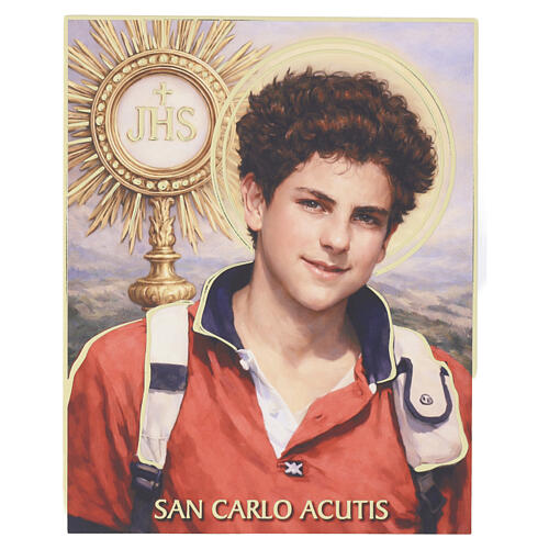 Tableau Saint Carlo Acutis 25x20 cm bois peint Valenti