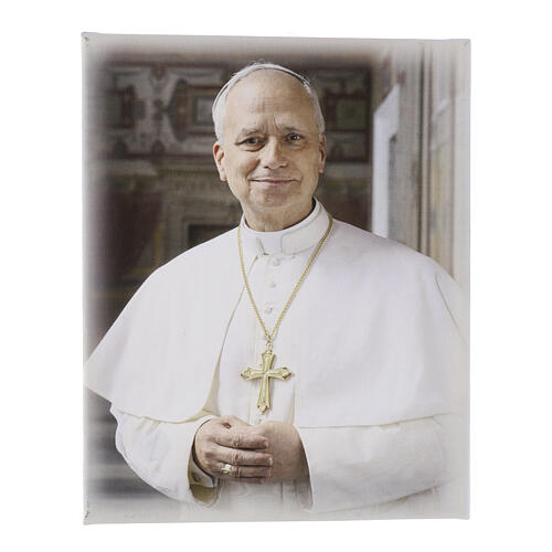 Toile Pape Léon XIV en soutane blanche 25x20x1 cm.