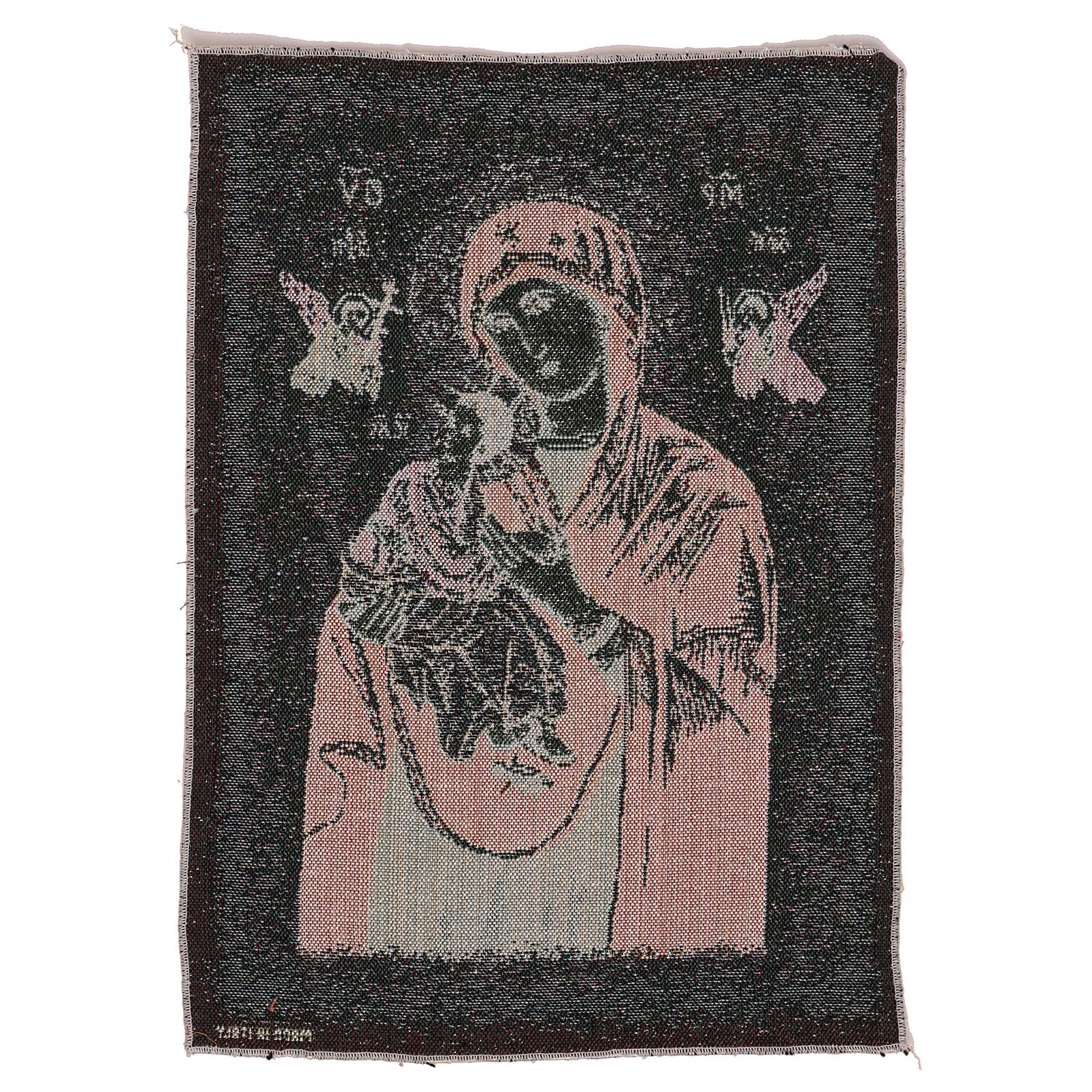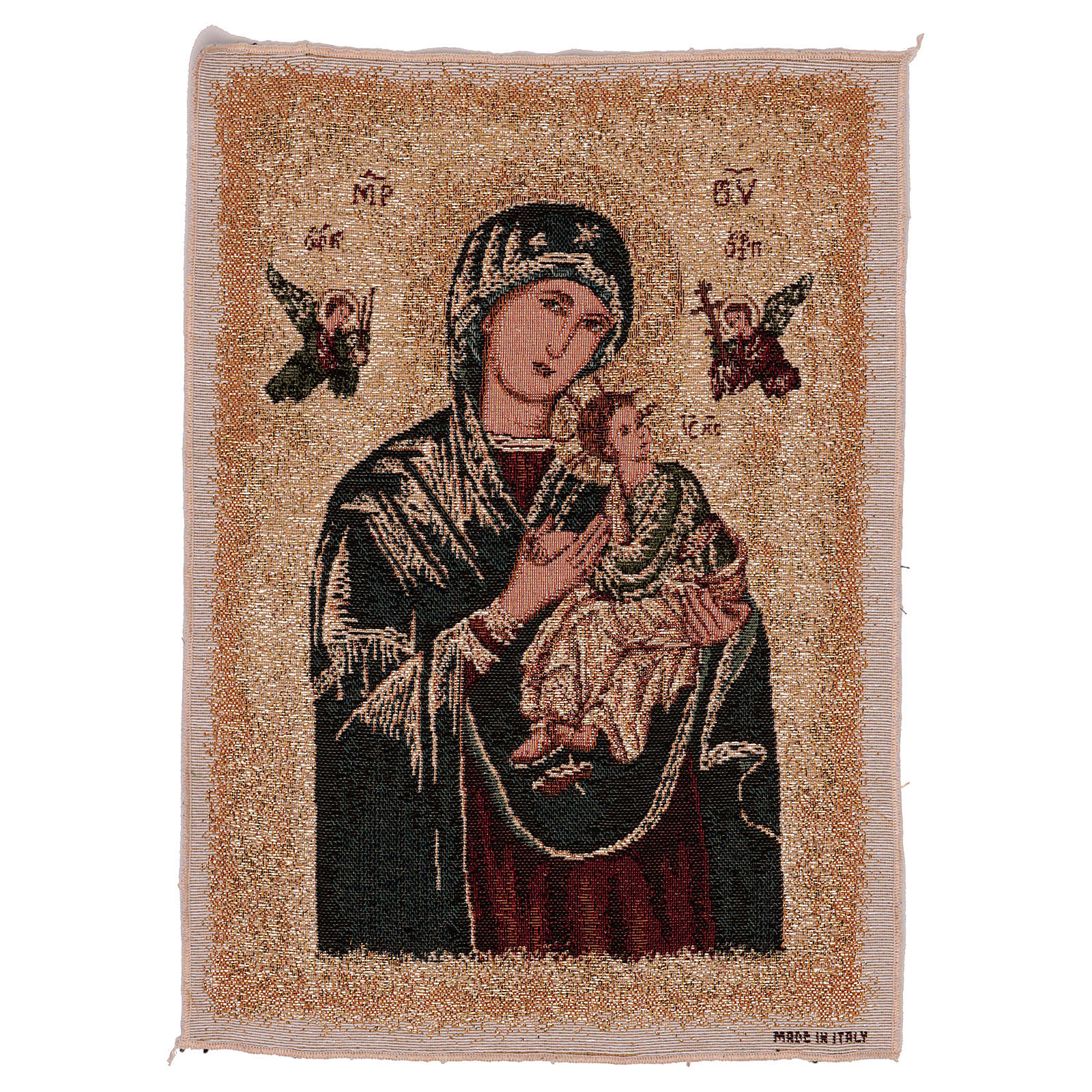 Tapisserie Notre-Dame du Perpétuel Secours or 40x30 cm. Tapisserie en tissu Jacquard entièrement confectionnée en Italie et finie à la main, représentant Notre-Dame du Perpétuel Secours sur fond doré.