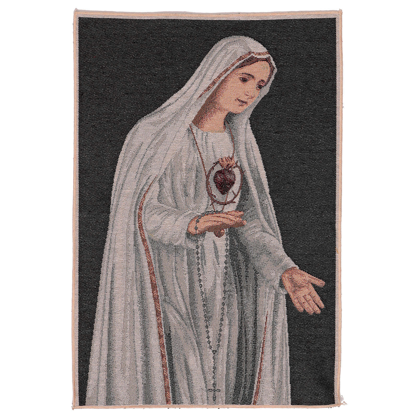 Tapisserie Sacré-Coeur de Fatima 50x40 cm. Tapisserie en tissu Jacquard fini à la main, entièrement réalisée en Italie.