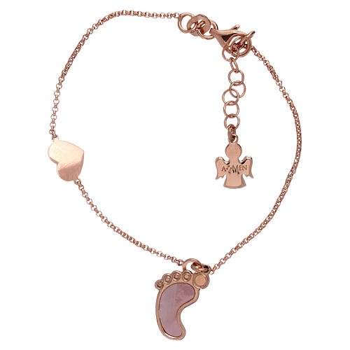 Bracelet AMEN argent 925 rosé avec pendentif en forme de pied et coeur