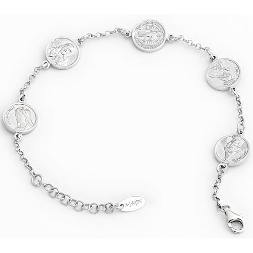 Bracelet AMEN St François St Christophe St Pio St Janvier St Antoine. Bracelet Amen en argent 925 avec médailles des Saints François, Christophe, Pio, Janvier et Antoine.