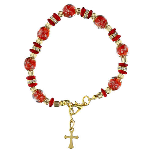 Bracelet doré perles de Murano 8 mm rouges mattes et perles translucides rouges