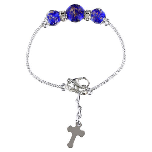 Bracelet femme en verre de Murano bleu, perles 10 mm, finition argentée.