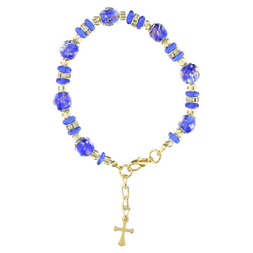 Bracelet finition dorée perles verre de Murano 8 mm bleu et perles bleues
