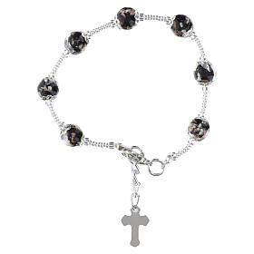 Bracelet en verre de Murano 8 mm, finition argentée, blanc et noir, avec croix