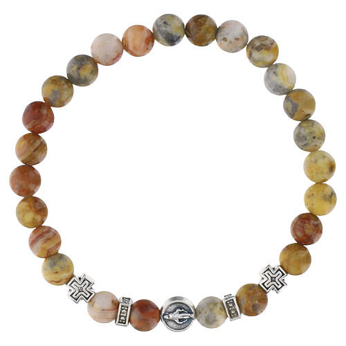 Bracelet élastique dizainier Vierge Miraculeuse agate du Mexique 6 mm