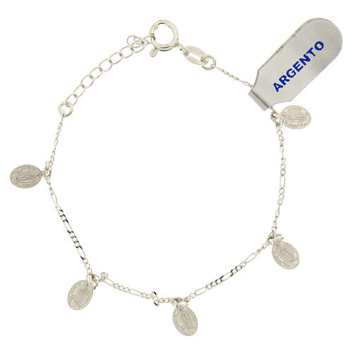 Bracelet en argent 925 avec médailles Notre-Dame de Lourdes (sur un seul côté) et crochet à ouverture et fermeture, poids du bijou 2,4 grammes.