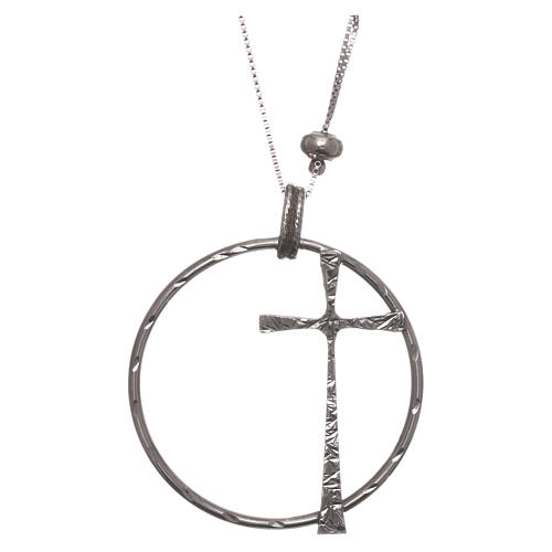 Collier AMEN argent 925 rhodié chaîne réglable. Collier AMEN en argent 925 avec finition rhodié, enrichi d'un pendentif rond fin de 3 cm, contenant une croix.Chaîne de taille réglable d'une longueur maximale de 80 cm.Les bijoux AMEN sont réalisés en Italie par une entreprise spécialisée dans la création d'articles de haute qualité.