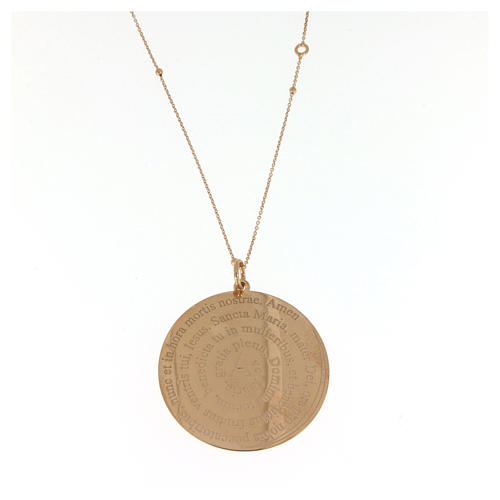 Collier Amen Coelis Ave Maria argent rosé. Collier Amen long en argent 925 rosé avec pendentif rond et incision de la prière Je Vous Salue Marie en LATIN. Ce collier est doté d'un fermoir mousqueton et d'une chaînette de réglage de 3 cm.
