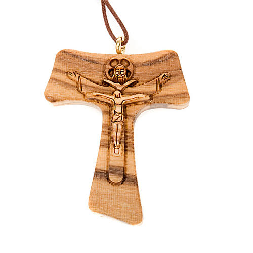 Tau en bois d'olivier réalisé à la main par un artisan de Assisi, réalisé à partir d'un seul bloc de bois sans noeuds ni défauts. Chaque article est unique dans son genre.