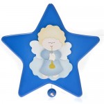 Il s’agit d’un très bel ornement adapté à toute chambre d’enfants. Réalisé en bois, en forme d’étoile, avec un sympathique petit ange musicien en bas-relief, le carillon s’active en tirant une corde qui fait démarrer une agréable mélodie. Il peut être suspendu au mur en toute sécurité et est vraiment une excellent idée-cadeau même pour un baptême.