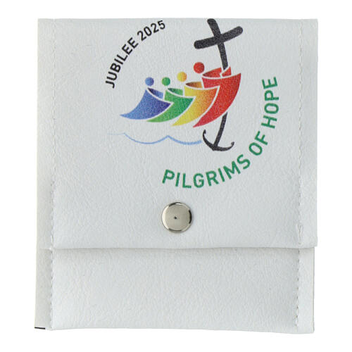 - Pochette chapelet Jubilé Pèlerins Espérance 8x9 cm ANGLAIS