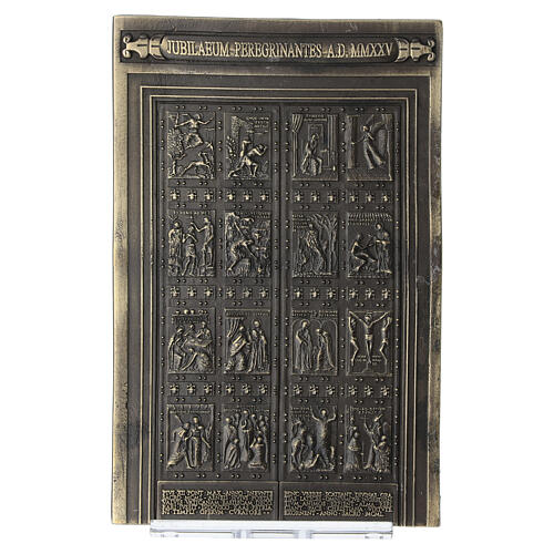 Porte Sainte Basilique Saint-Pierre en alliage avec boîte 13x8 cm. Porte Sainte de la Basilique Saint-Pierre en alliage de zinc et de cuivre avec finition argentée, mesurant 13x8 cm, présentée dans une boîte raffinée rouge avec le blason du Vatican, mesurant 23x16x3,5 cm.