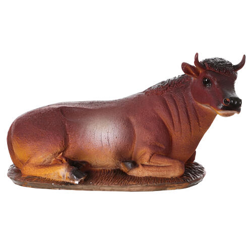 STOCK Boeuf allongé regard vers droite résine crèche 50 cm. Statue pour crèche et Nativité avec santons de 40-50 cm de hauteur moyenne, réalisée en résine peinte à la main.