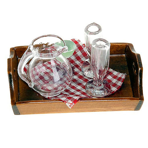 - Plateau avec carafe et deux verres d'eau pour crèche