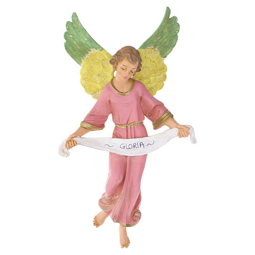 Ange Gloire bleu crèche Fontanini 24 cm. Ange en pvc peint à la main dans le respect des couleurs et des tenues traditionnelles, adapté pour crèche Fontanini avec santons de 24 cm de hauteur moyenne.