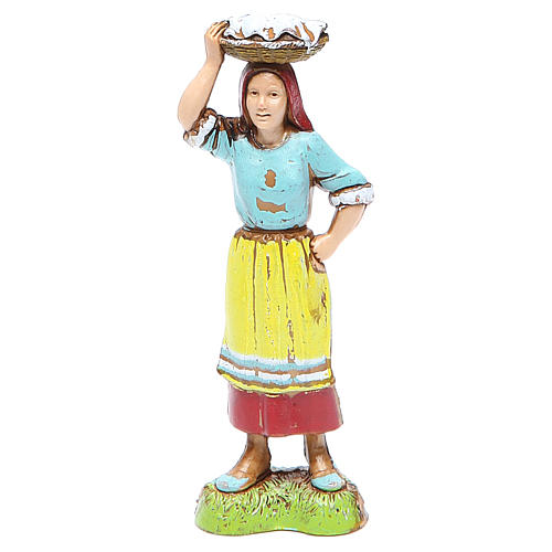 Femme avec panier sur le tête 10 cm Moranduzzo style classique. Santon pour crèche de style classique de 10 cm en pvc en Italie par Moranduzzo. Peinture sérigraphiée, finie à la main.
