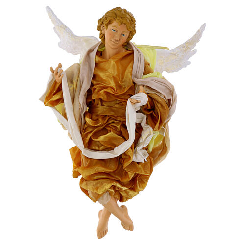 Ange blond 45 cm robe dorée crèche Naples. Santon de crèche napolitaine en terre cuite peinte et couverte de tissu, représentant un ange. Figurine réalisée entièrement à la main à Naples par des artisans expérimentés.