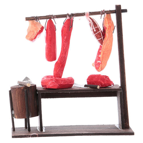Banc du boucher pour crèche Napolitaine. Miniature pour décorer la crèche de noël de 10 cm