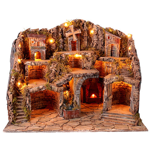 Crèche napolitaine ruisseau four moulin pour statues 10 cm 70x85x60 cm