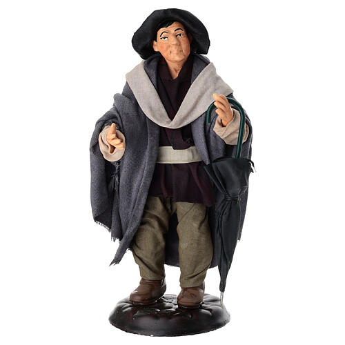 Homme avec parapluie terre cuite 18 cm crèche napolitaine