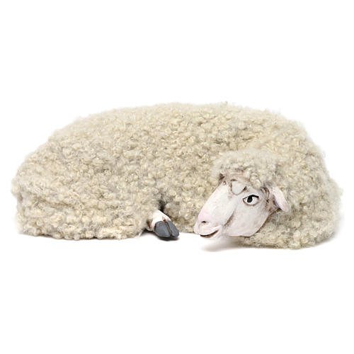 Mouton allongé avec laine pour crèche Naples style 1700 35 cm