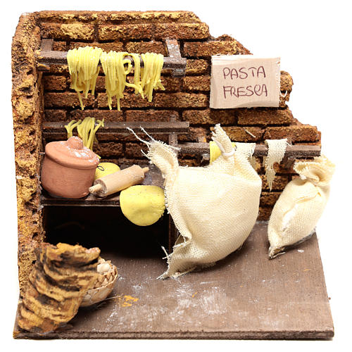 Scène pâtes fraîches 10x15x10 cm pour crèche Naples 10 cm