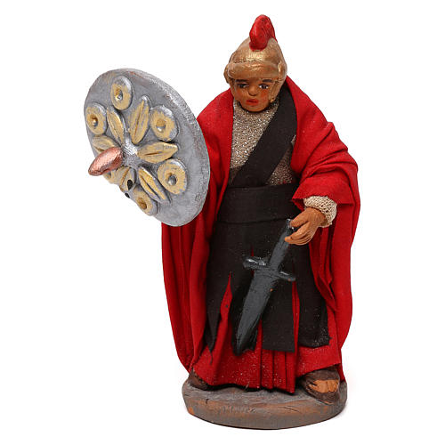 STOCK Soldat romain avec épée terre cuite crèche napolitaine 10 cm. Santon de crèche napolitaine en terre cuite et tissu, manufacturé à Naples selon la tradition locale. Modèle adapté pour crèche de 10 cm.