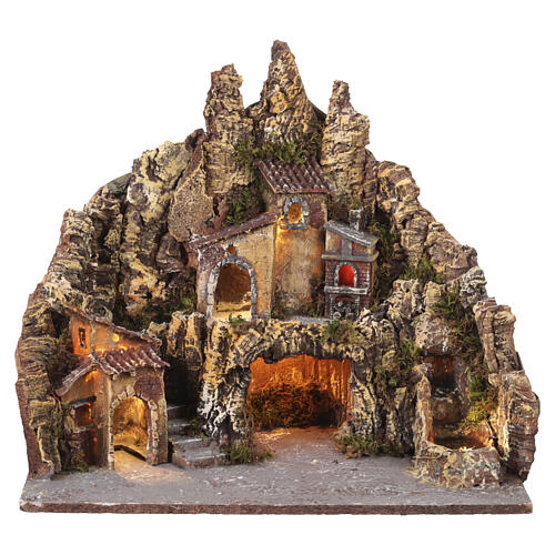 Village illuminé four et cascade crèche napolitaine 6-8 cm 45x35x40 cm.