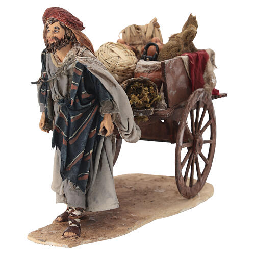 Agriculteur avec charrette 13 cm Angela Tripi. Santon de 13 cm d'un homme poussant une charrette avec les fruits de son travail pour les vendre au marché.
