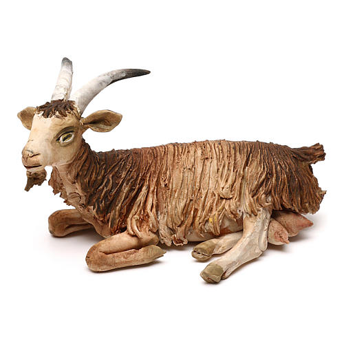 Chèvre 13 cm pour crèche Angela Tripi. Santon d'animal réalisé à la main en terre cuite avec soin et maîtrise par l'artiste sicilienne de renommée mondiale, Angela Tripi, qui réussit à créer des figurines d'une expressivité et d'un charisme extraordinaires.Chaque pièce n'est jamais exactement pareille, mais unique grâce au travail époustouflant de cette artiste.