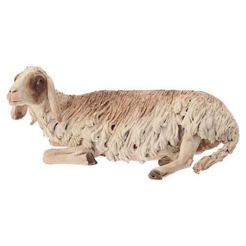 Mouton allongé 30 cm crèche Angela Tripi. Santon en terre cuite adapté pour crèche de 30 cm, représentant un mouton allongé par terre.