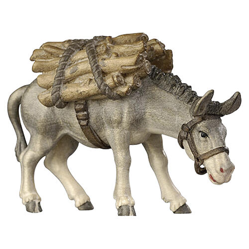 Âne avec bois crèche bois peint 12 cm modèle Heimatland Val Gardena. Statue en bois finie à la main, idéale pour une crèche avec personnages de 12 cm de hauteur moyenne.