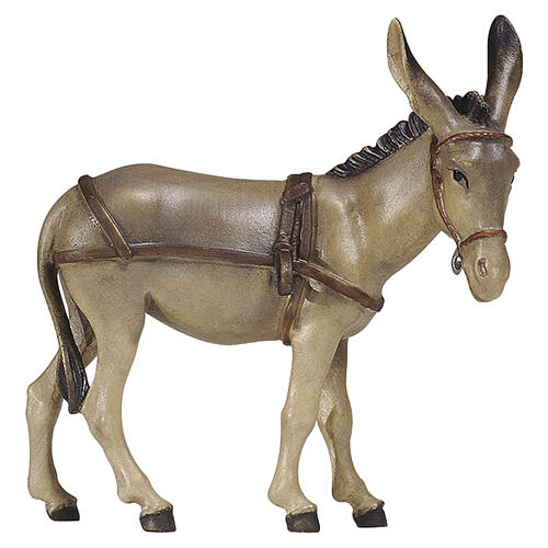Âne pour charrette 9,5 cm figurine bois peint crèche Heimatland Val Gardena. Statuette réalisée en bois et finie à la main par des artisans italiens.