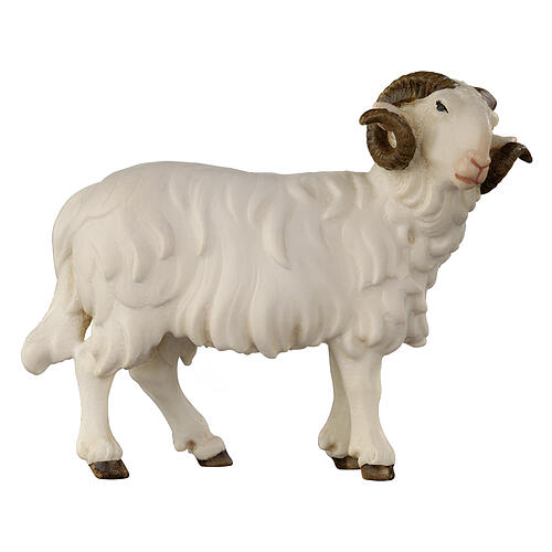Bélier tête à droite crèche Mahlknecht bois peint 9,5 cm Val Gardena