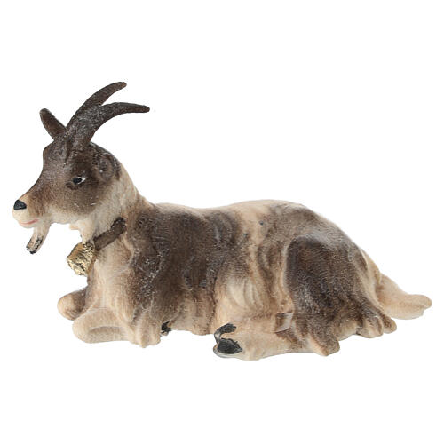 Chèvre allongée crèche bois peint 12 cm modèle Heimatland Val Gardena. Statue en bois finie à la main, idéale pour une crèche avec personnages de 12 cm de hauteur moyenne.
