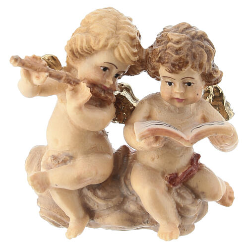 Couple d'anges bois peint crèche Kostner 12 cm