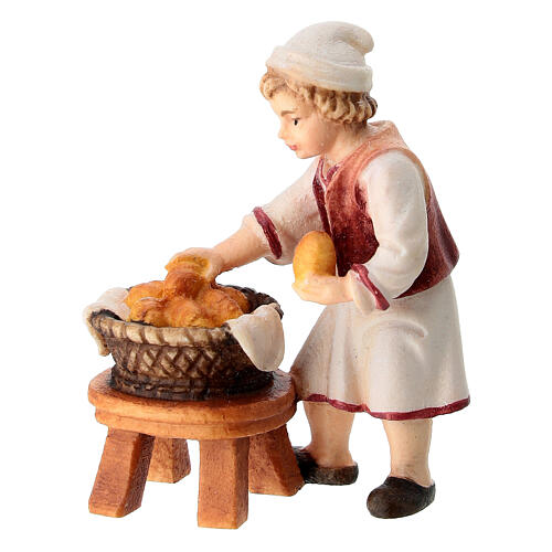 Enfant avec panier bois peint Val Gardena crèche Rainell 9 cm