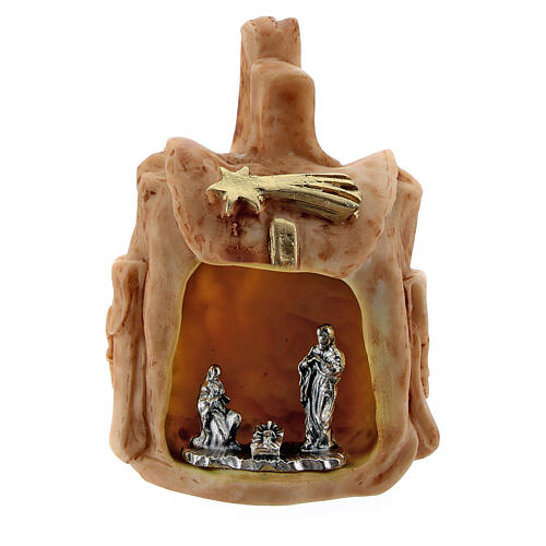 Sac-à-dos résine avec Nativité 5 cm métal. Sac-à-dos miniature en résine avec niche contenant une Nativité en métal.