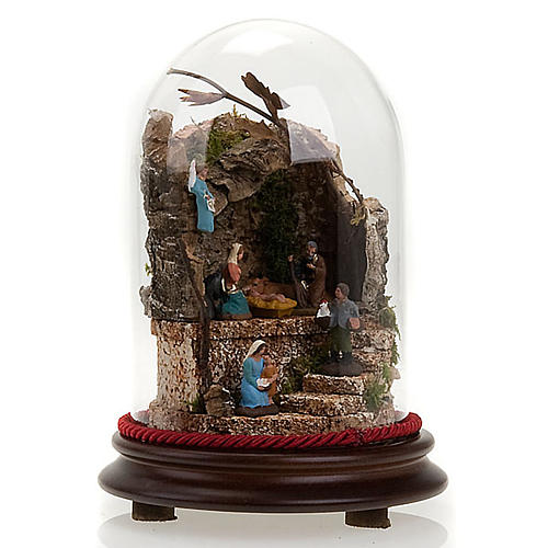 Crèche dans une cloche en verre avec milieu, 20 cm