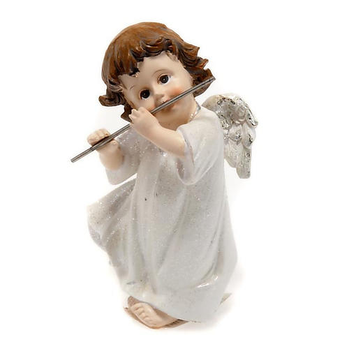 Ange musicien blanc avec glitter argenté. Ange qui joue la flûte travrsière. Idéal comme idée cadeau ou pour décorer la maison de Noël.