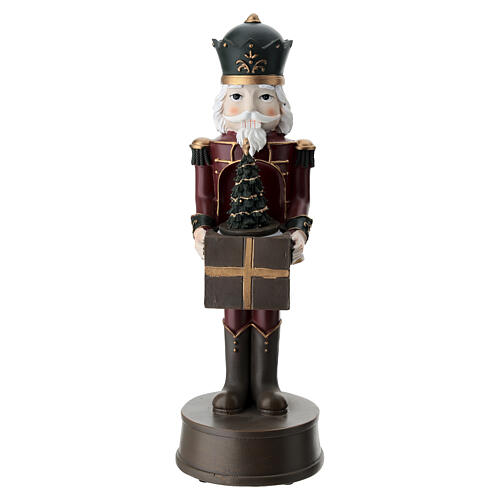 Le soldat, arborant son uniforme élégant et riche en détails, tient un paquet-cadeau. L'élément central de la statue est le petit sapin de Noël placé au-dessus du paquet, prenant vie grâce à un mécanisme interne : l'arbre tourne délicatement sur lui-même, créant un effet visuel enchanteur.